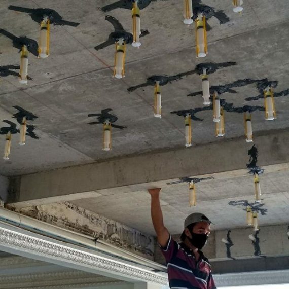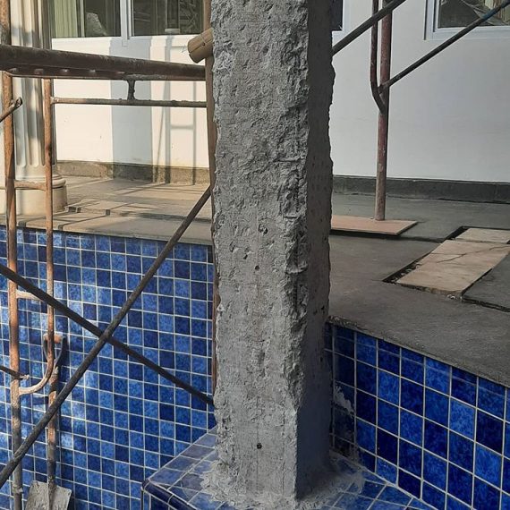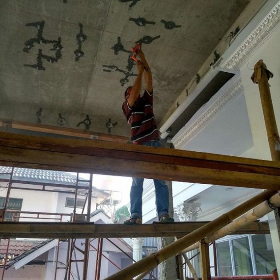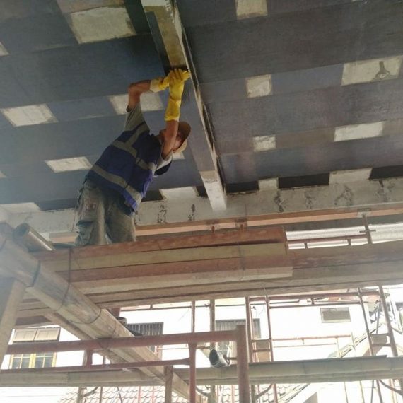 Ini adalah beberapa foto Pekerjaan Pembesaran tiang kolom dan perkuatan struktur kolom dengan FRP (Fiber Reinforcement Polymer) rumah pribadi, didaerah Cibubur-Jakarta Timur